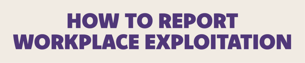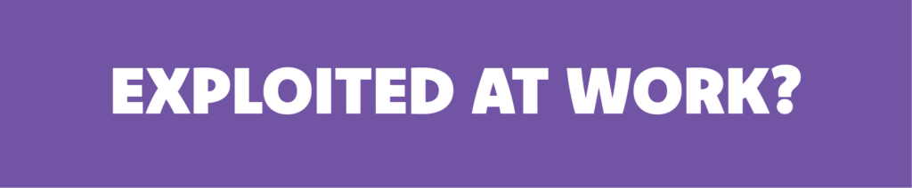 If you find yourself exploited at work and you can’t talk to your employer about it or don’t feel confident to, get to a safe place outside your workplace.